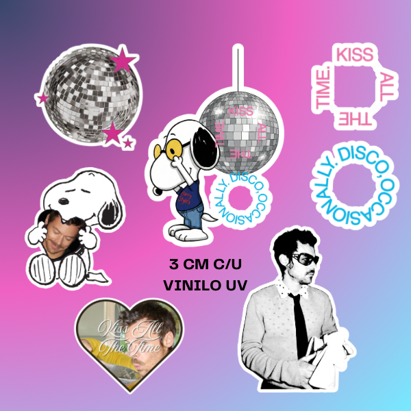 Pack de 6 mini stickers de 3 cm cada uno, impresos en vinilo UV.